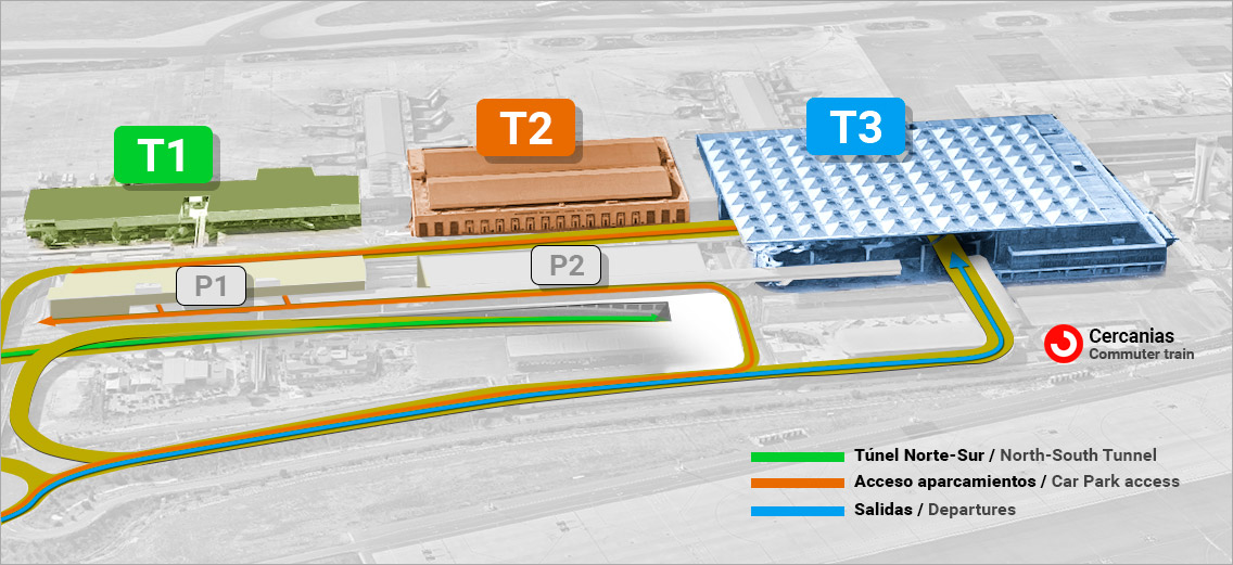 Früher wurde der komplette Flugverkehr in den alten T1 und T2 abgewickelt, was sich mit der Eröffnung des Terminals 3 im März 2010 änderte. Mit dem Bau des modernen T3 ging der kommerzielle Verkehr in den vorher erwähnten Terminals stark zurück. So ist z. B. der Terminal 1 nun für den Publikumsverkehr geschlossen, um Energie zu sparen und Kosten zu reduzieren und im Terminal 2 werden hauptsächlich Flüge außerhalb der Schengen Staaten und einiger Billigflieger abgewickelt.